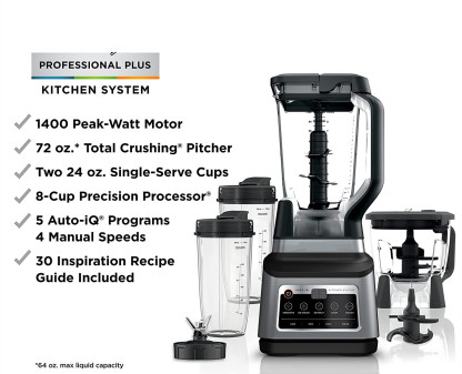 - WHAT'S INCLUDED: 1500-Watt Motor Base, 72 oz. 64 oz. max liquid capacity, 8-Cup Food Processor Bowl, 16 oz. Cup with To-Go Lid, Stacked Blade Assembly, Dough Blade Assembly, Chopping Blade Assembly, Blades Assembly, & Inspiration Guide