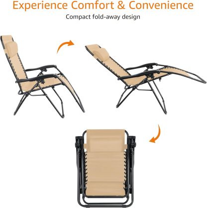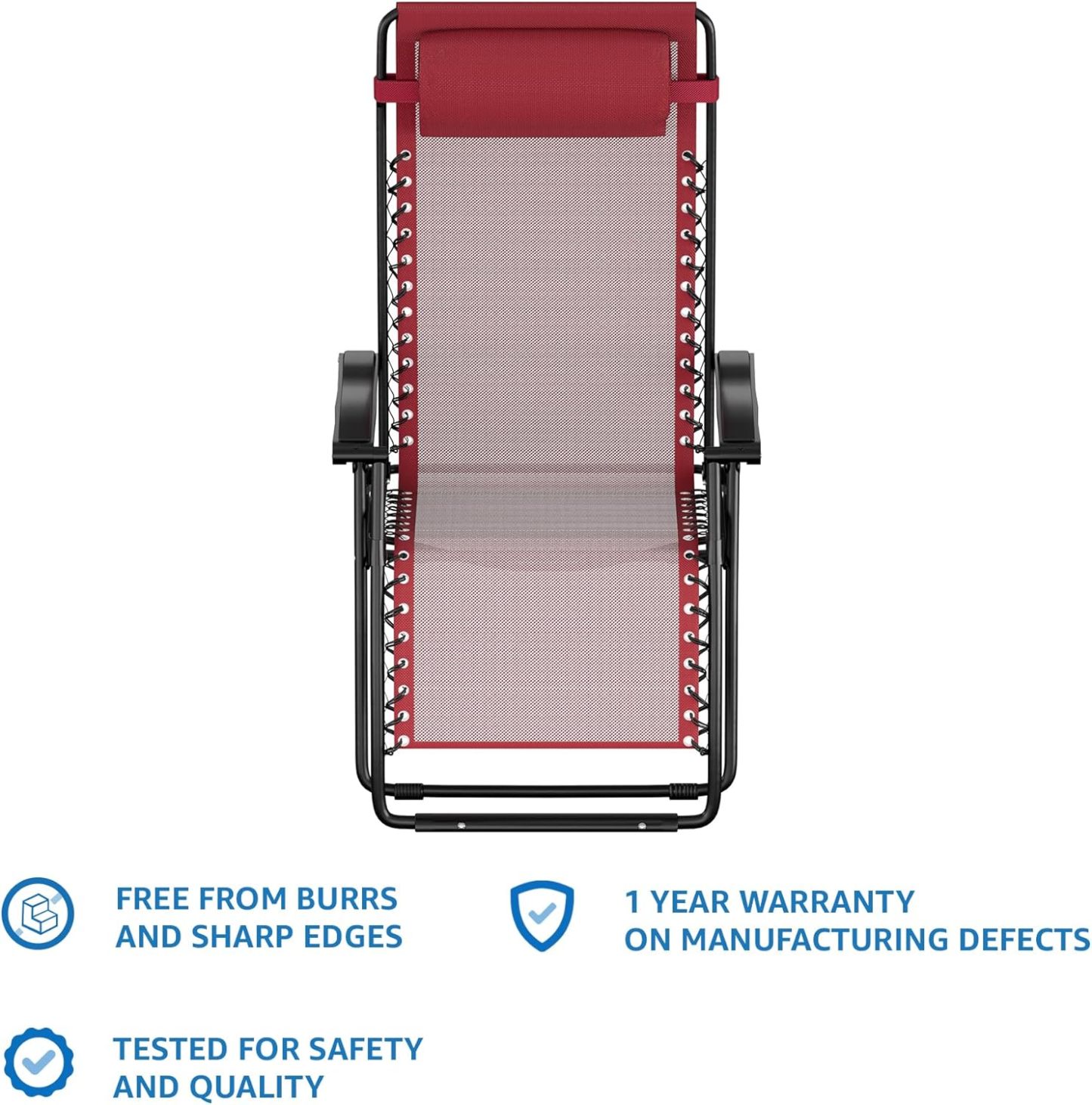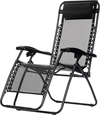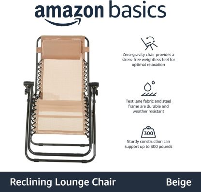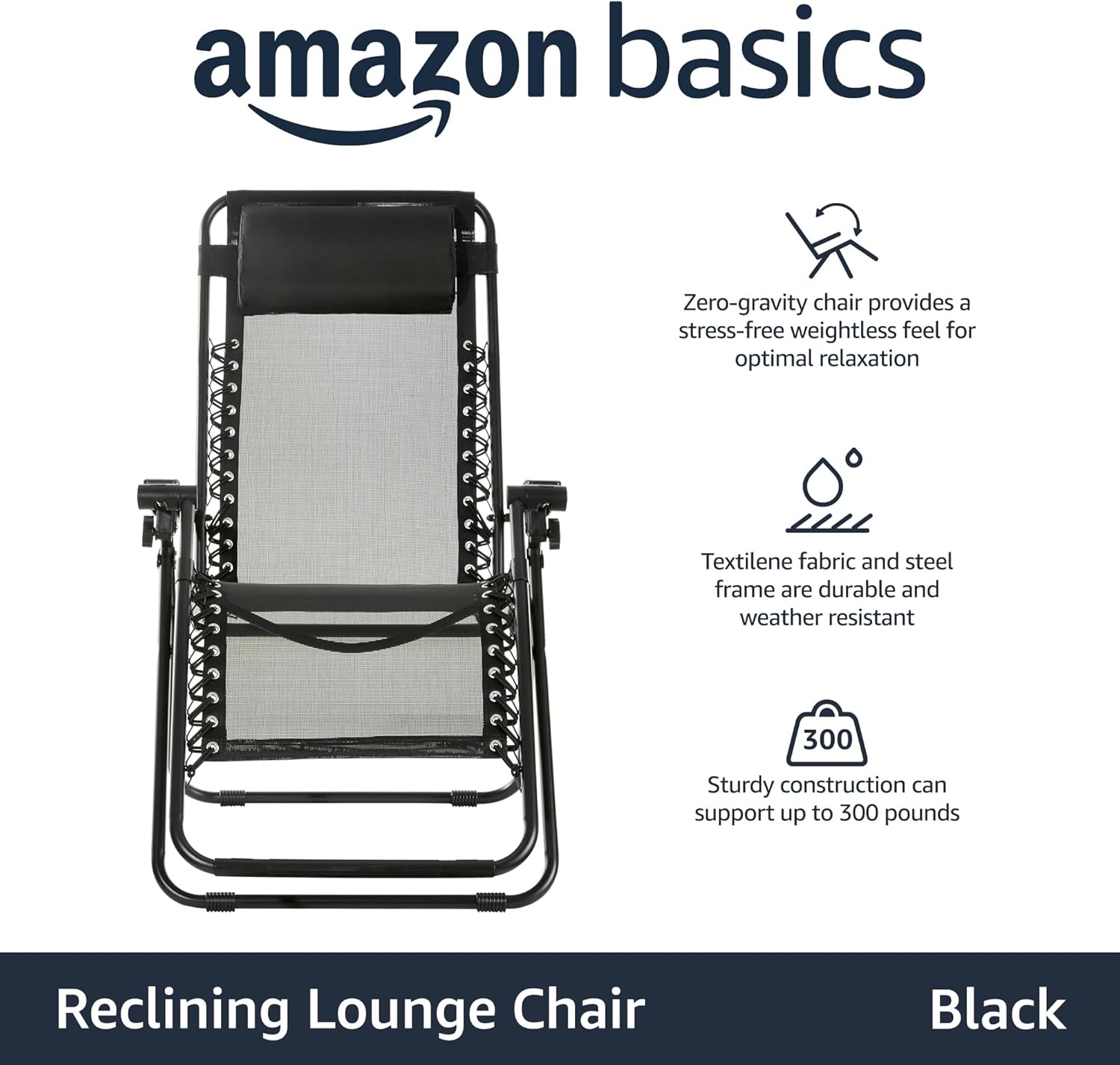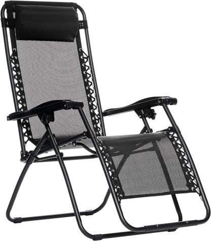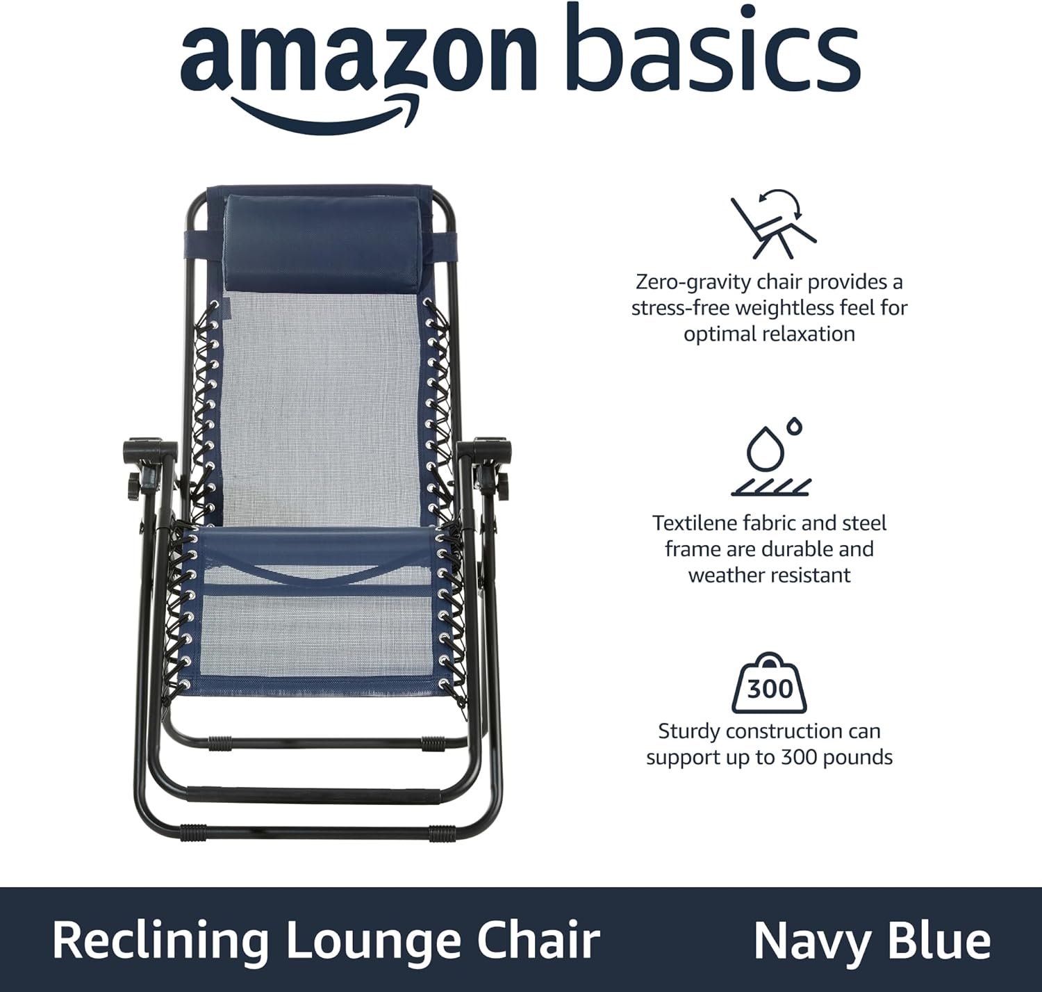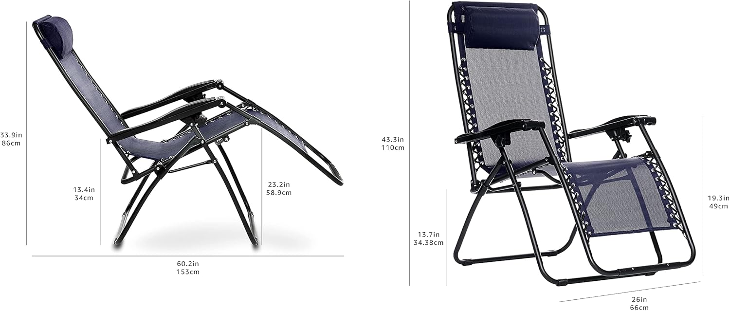 Basics Outdoor Textilene Adjustable Zero Gravity Folding Reclining Lounge Chair with Pillow, 26", Navy Blue