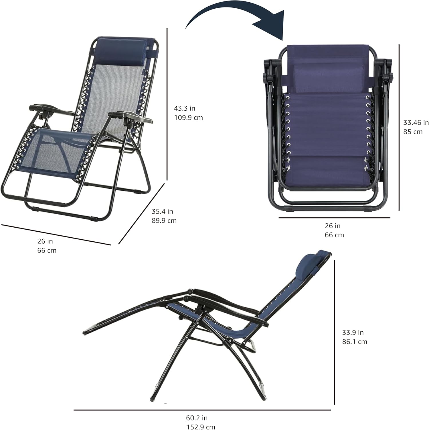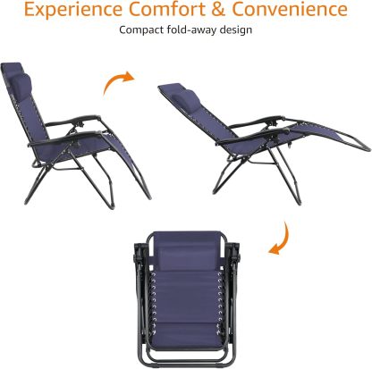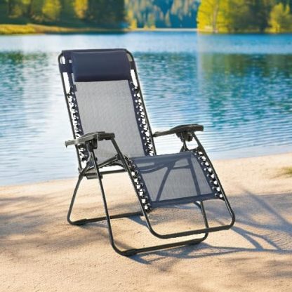 Adjustable zero-gravity outdoor chair in Navy Blue provides a stress-free weightless feel for optimal relaxation