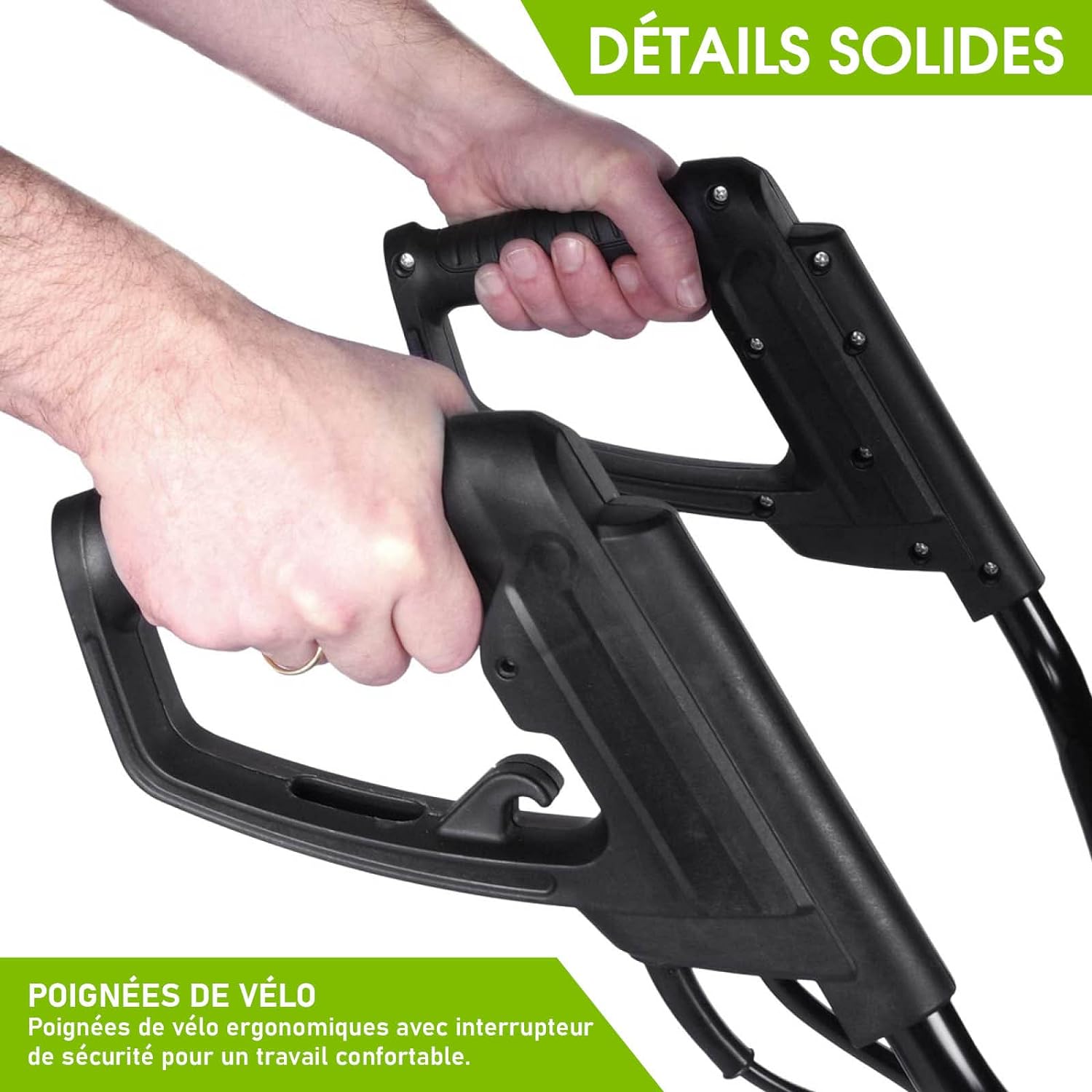- Powerful 1,500 watt electric motor with anti-lock clutch for hard floors, even on clay soils