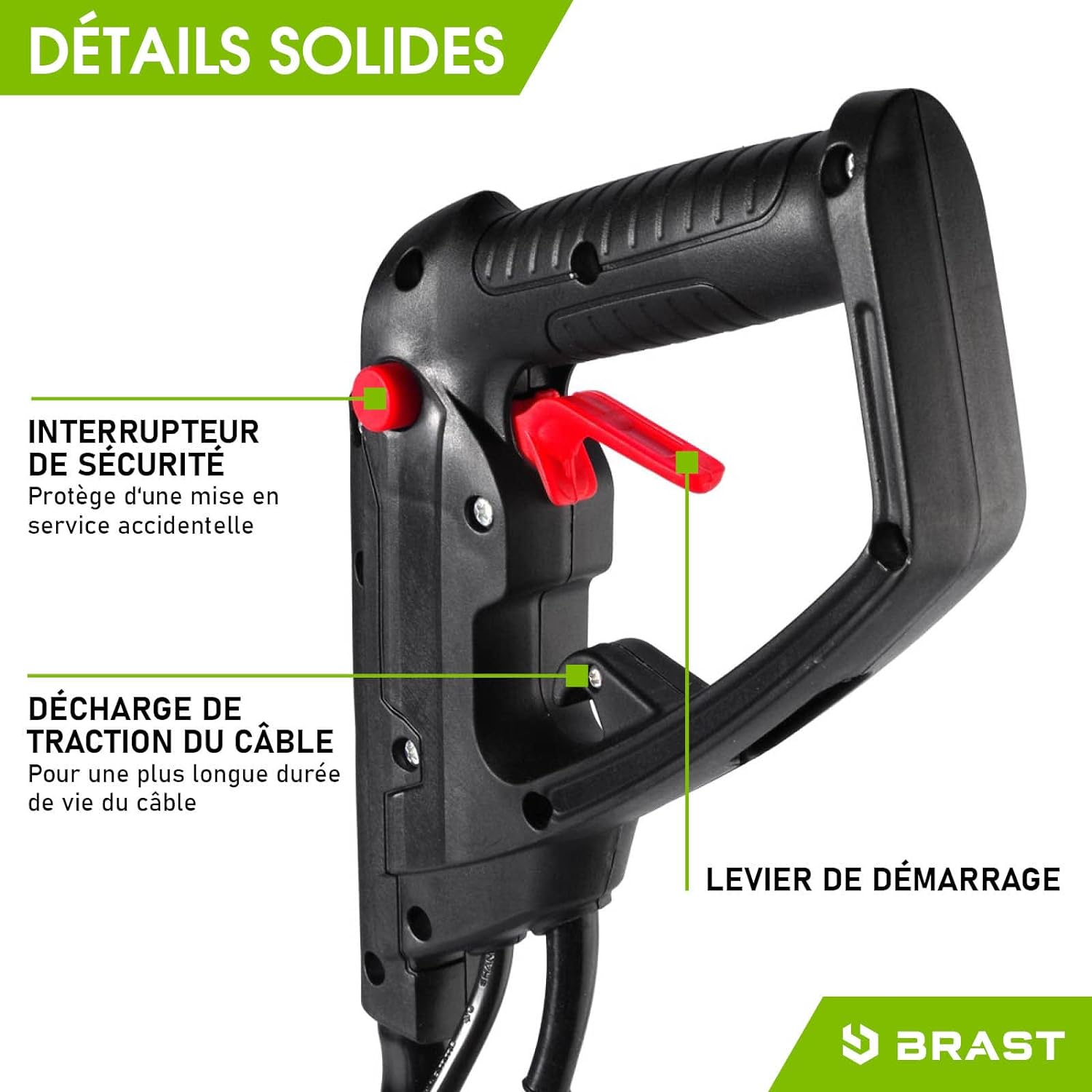 - COMFORTABLE and SAFE: Foldable transport wheels, strain relief for long cable life, an additional carrying handle as well as a comfortable bicycle handle complete the profile of this BRAST tiller profi