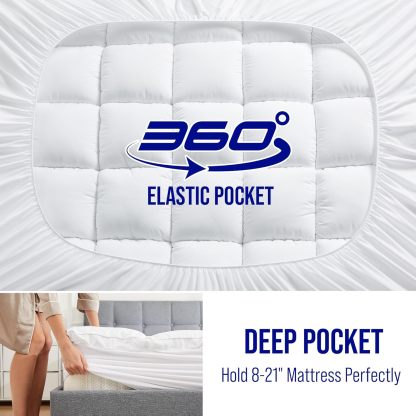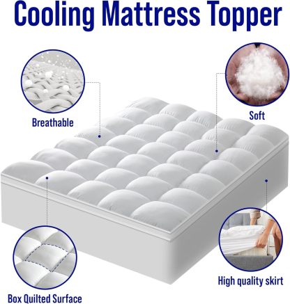 Extra Thick Mattress Topper, Down Alternative Overfill Plush Mattress Pad Cover Topper, Cooling Pillow Top with 8-21Inch Deep Pocket