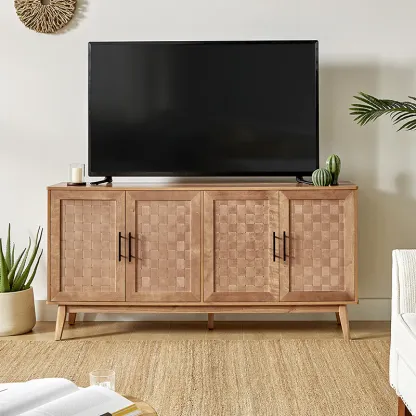 Horace 63" Wide Sideboard with Maple Veneer Woven Cabinet Doors