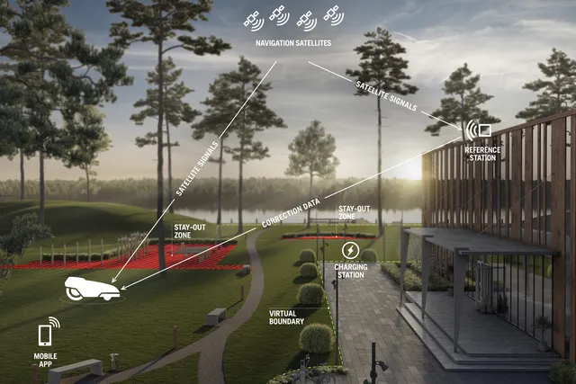 Virtual boundaries through satellite based technology with an accuracy down to 2-3 cm. No physical wires means new level of robustness and flexibility with unmatched possibilities when programming. Makes it possible to define several work areas with different timers and settings. Like to create temporary stay-out zones and pre-set transport paths for a more flexible placement of the charging station.