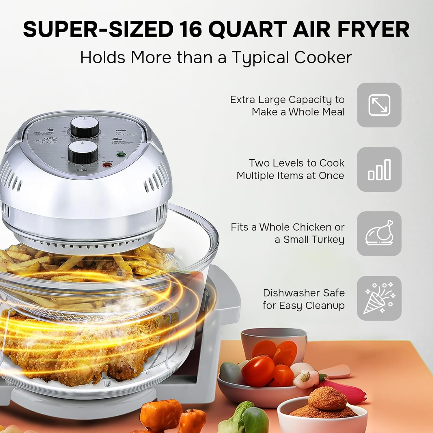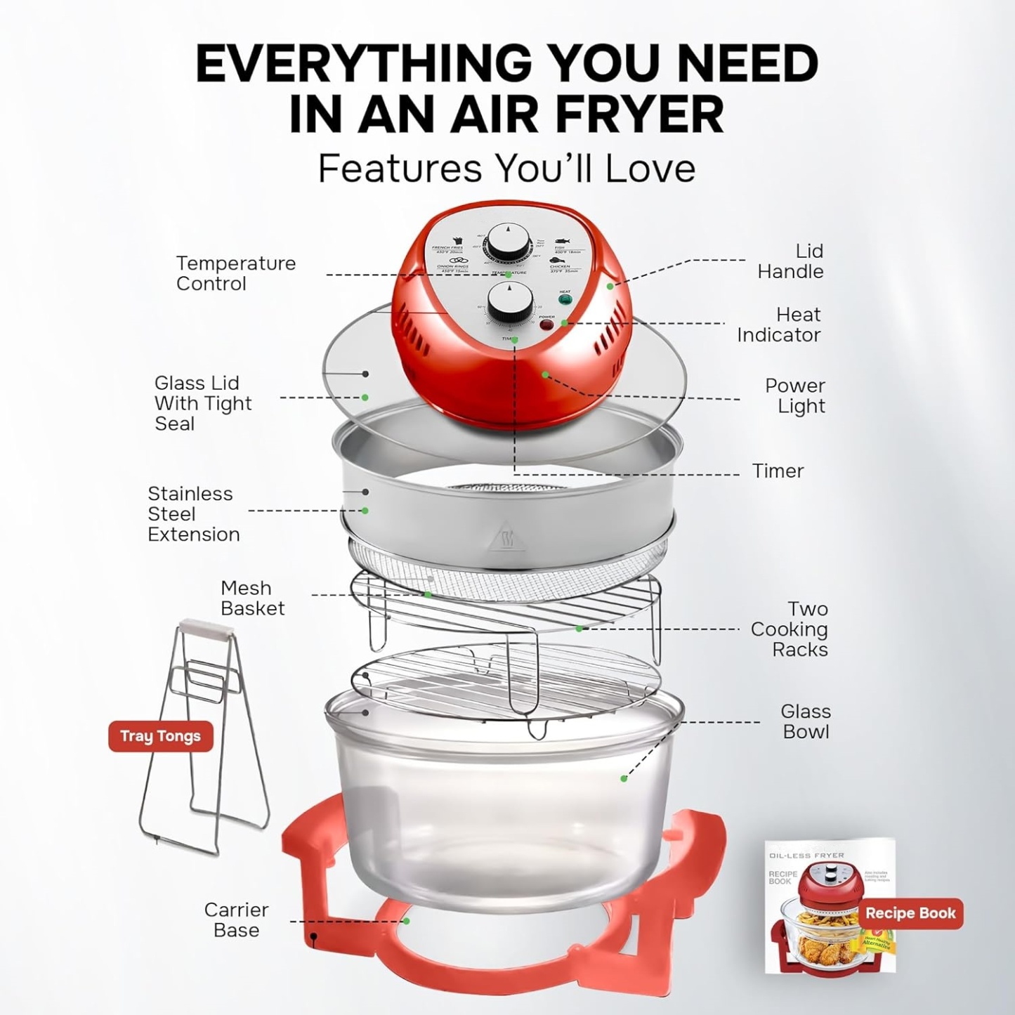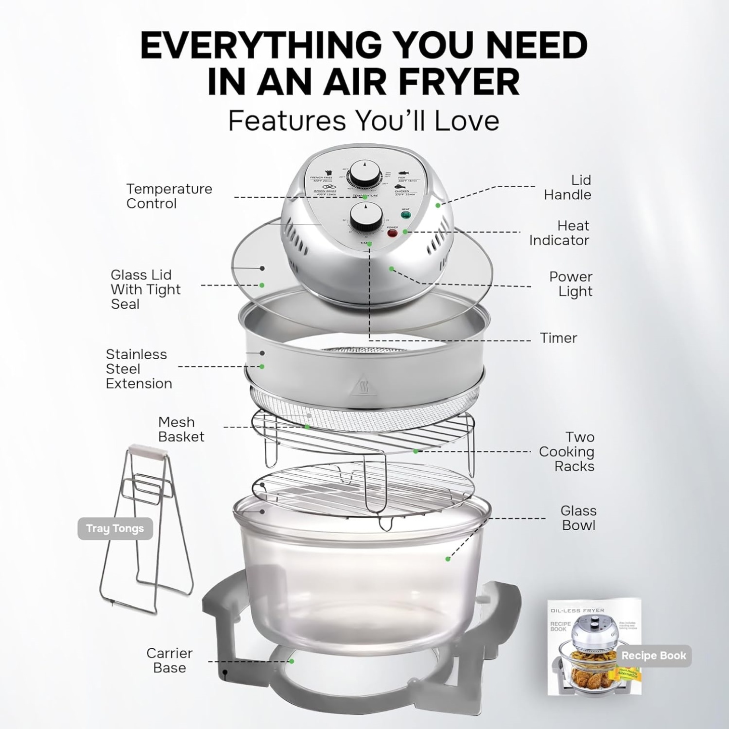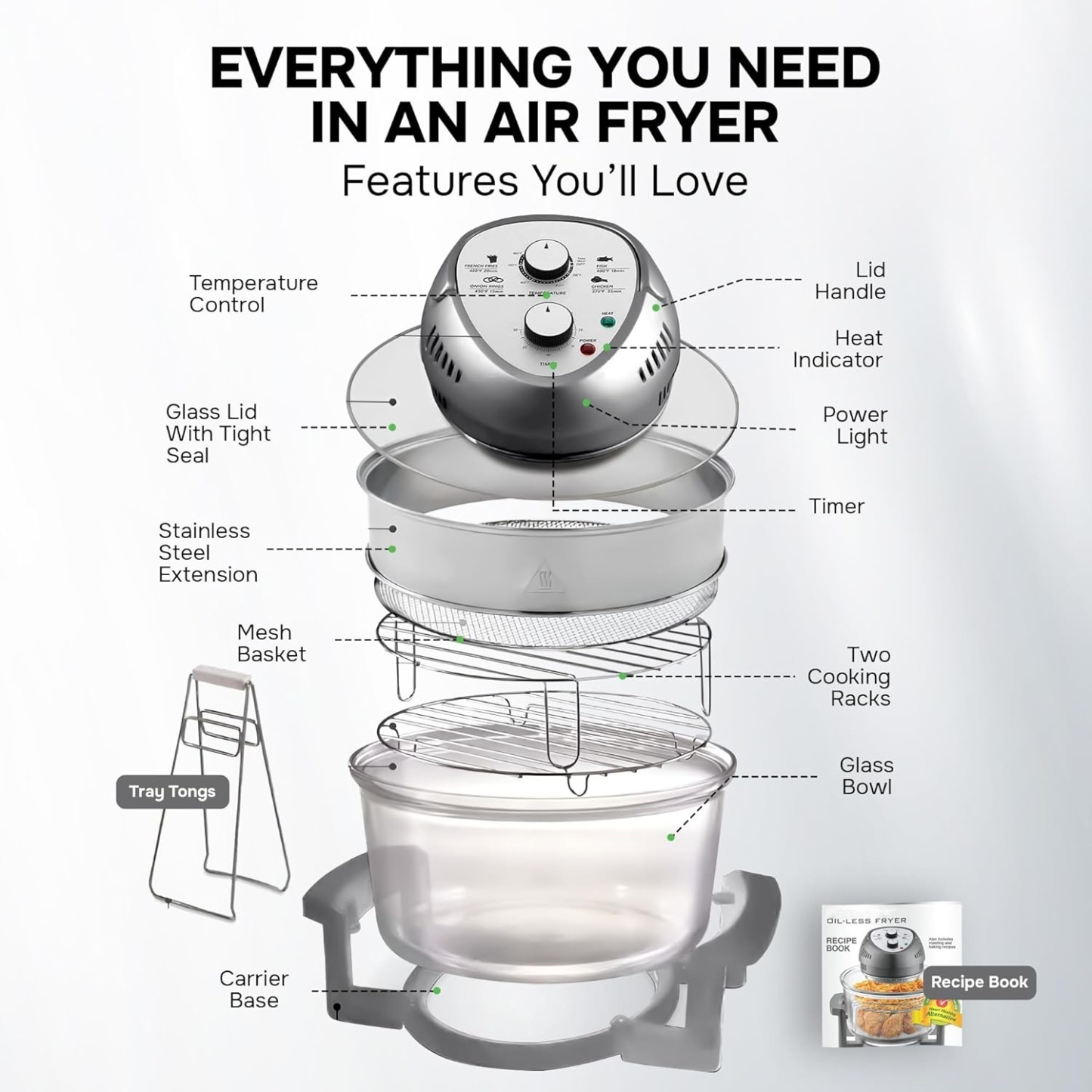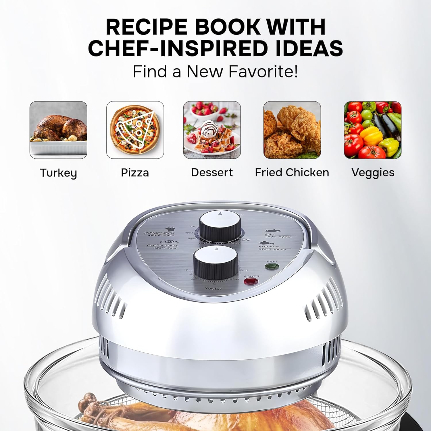 Large Air Fryer Oven �?Large Halogen Oven Cooker with 50+ Air Fryers Recipe Book for Quick + Easy Meals for Entire Family, AirFryer Oven Makes Healthier Crispy Foods