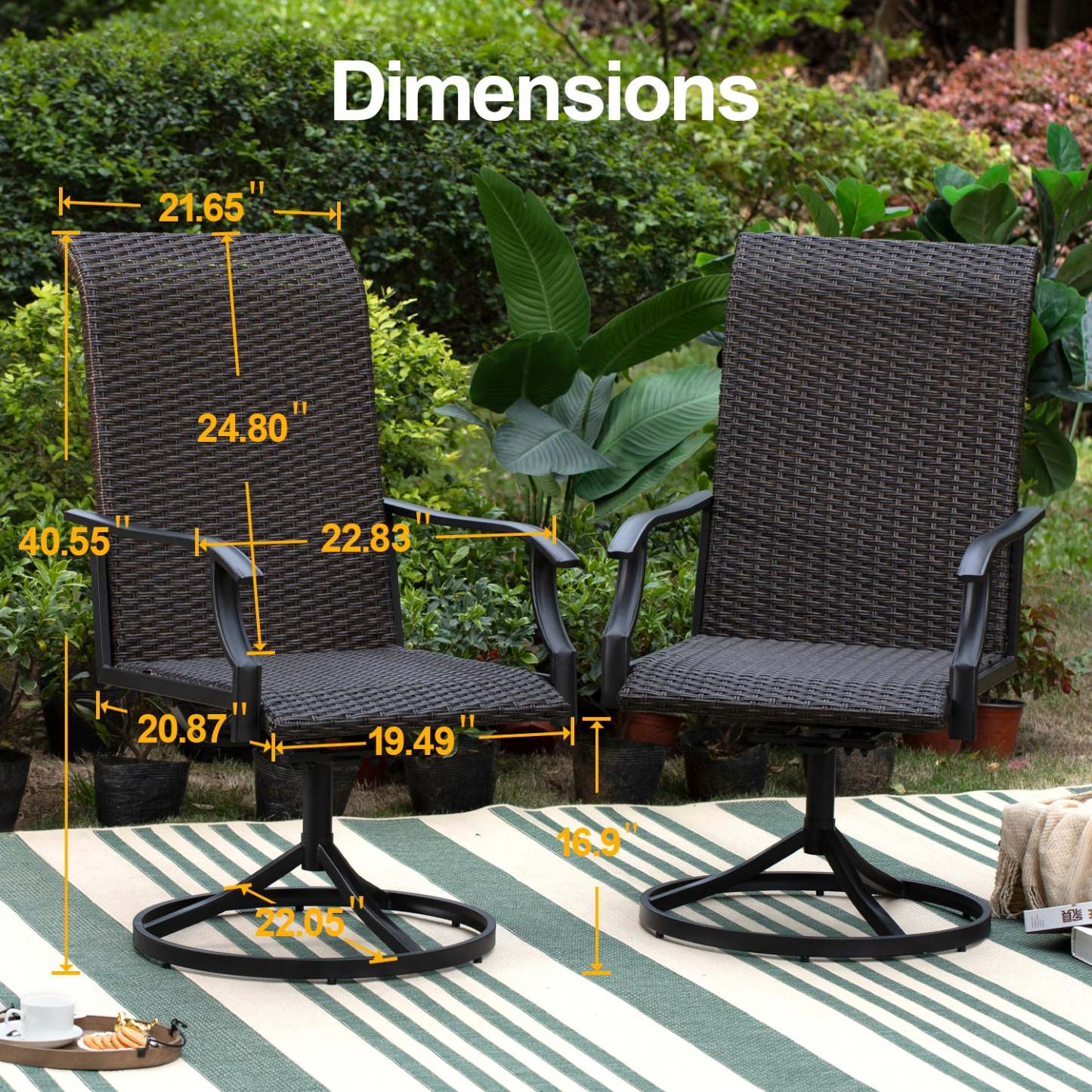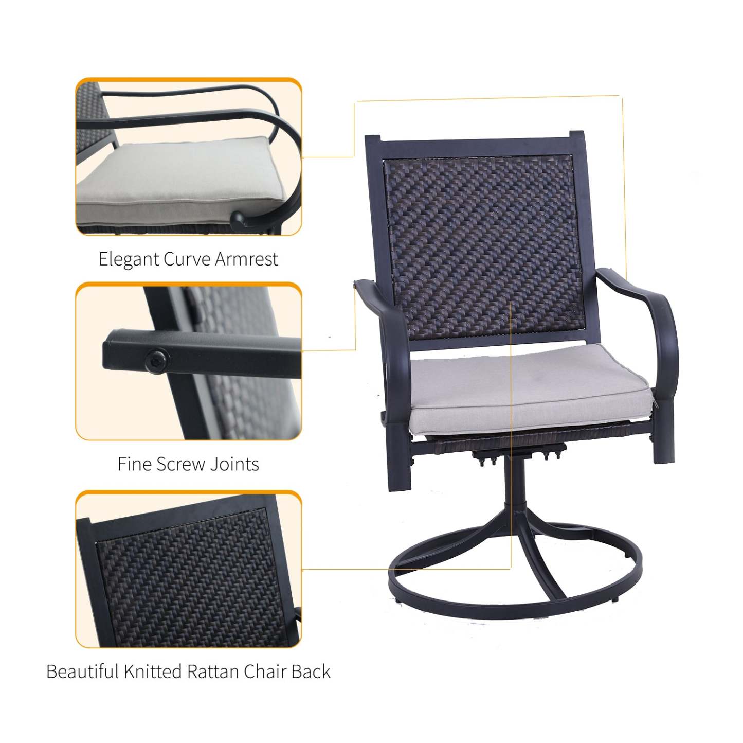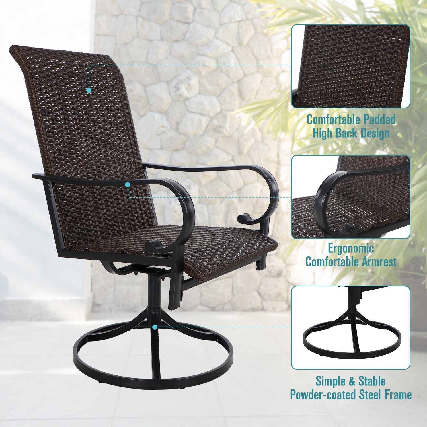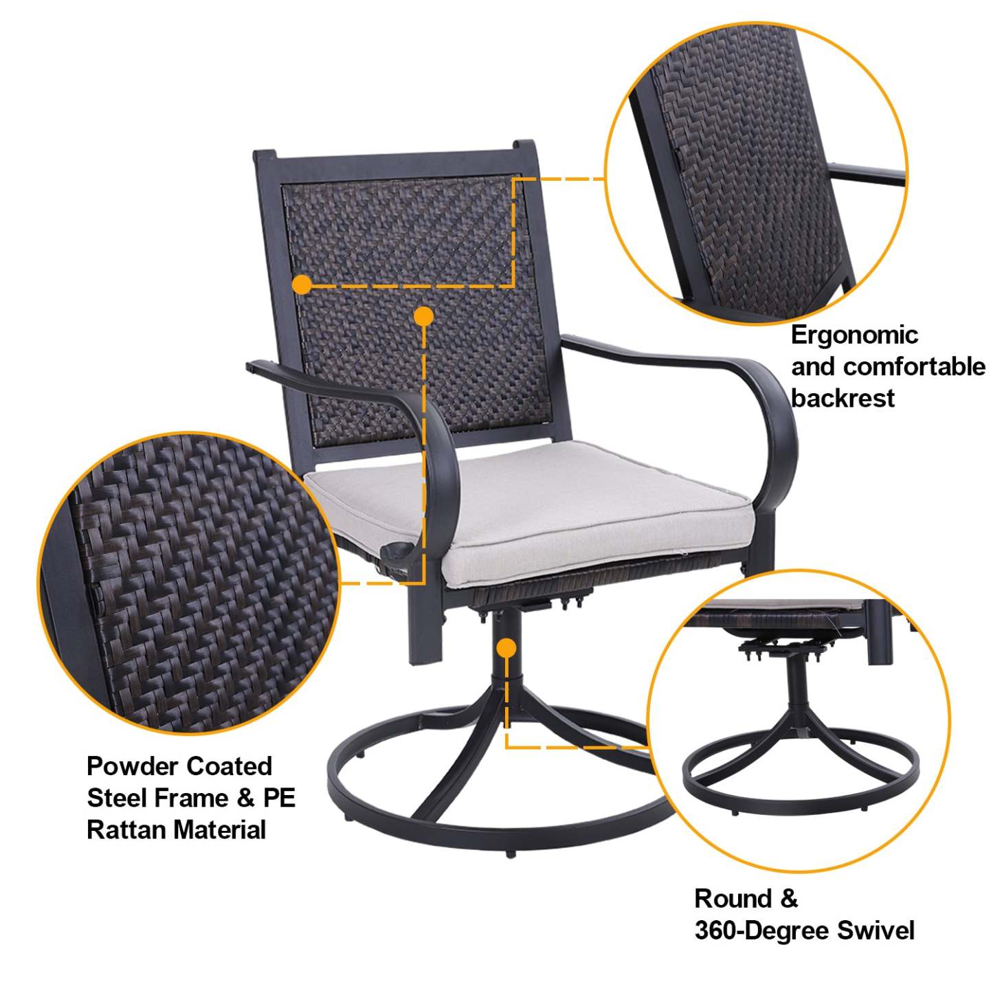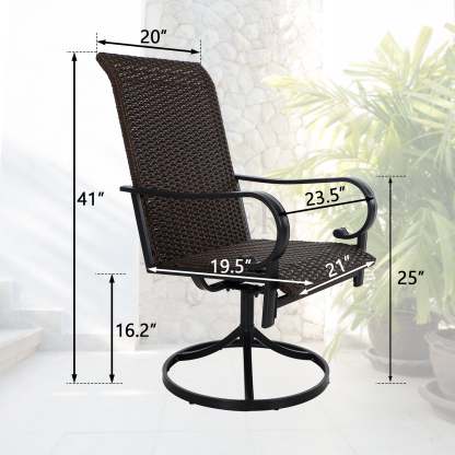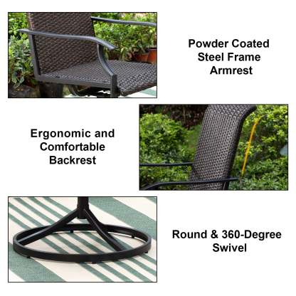 5-Piece Patio Outdoor Fire Pit Set with Rattan Swivel Chairs & Wood-look Square Steel Gas Fire Pit Table