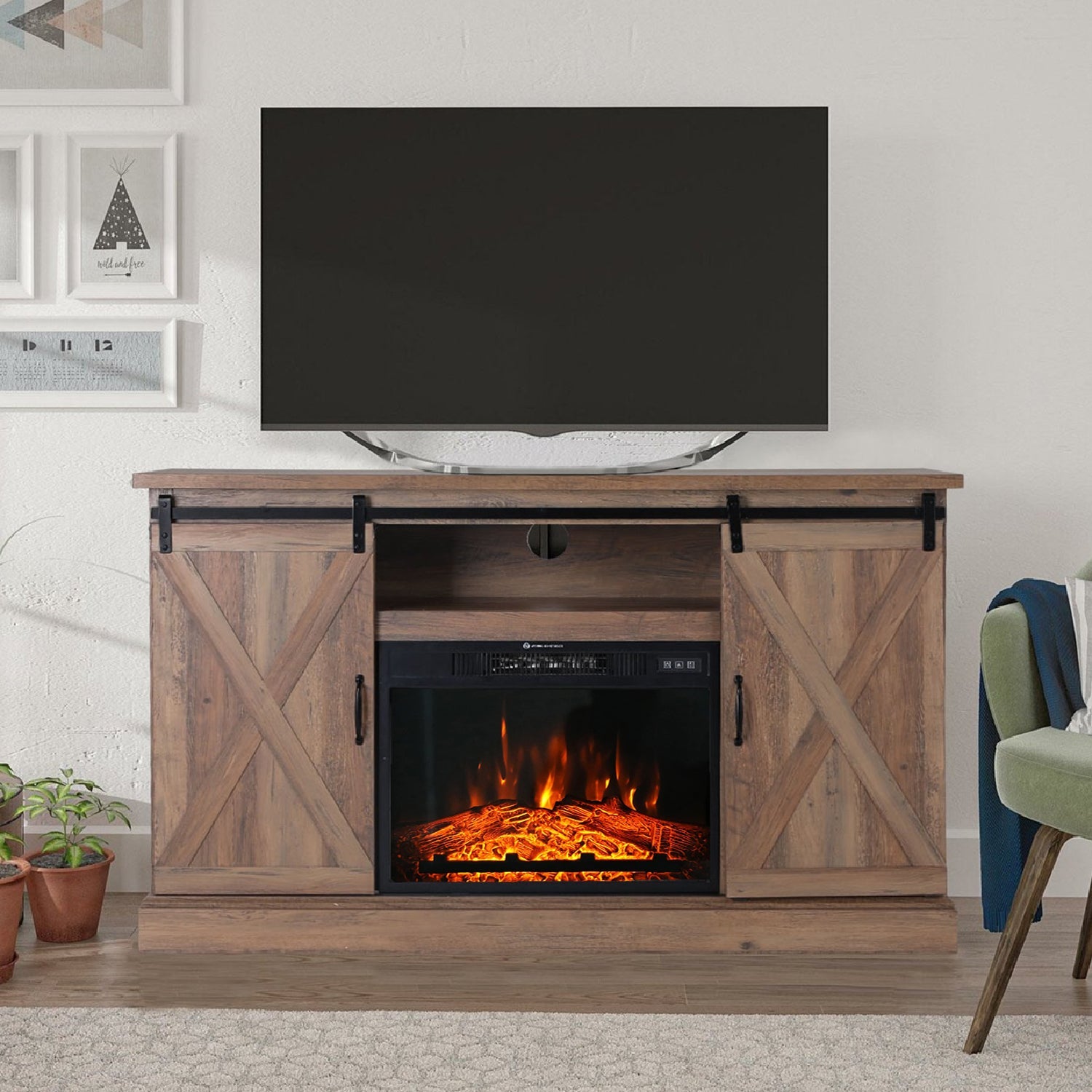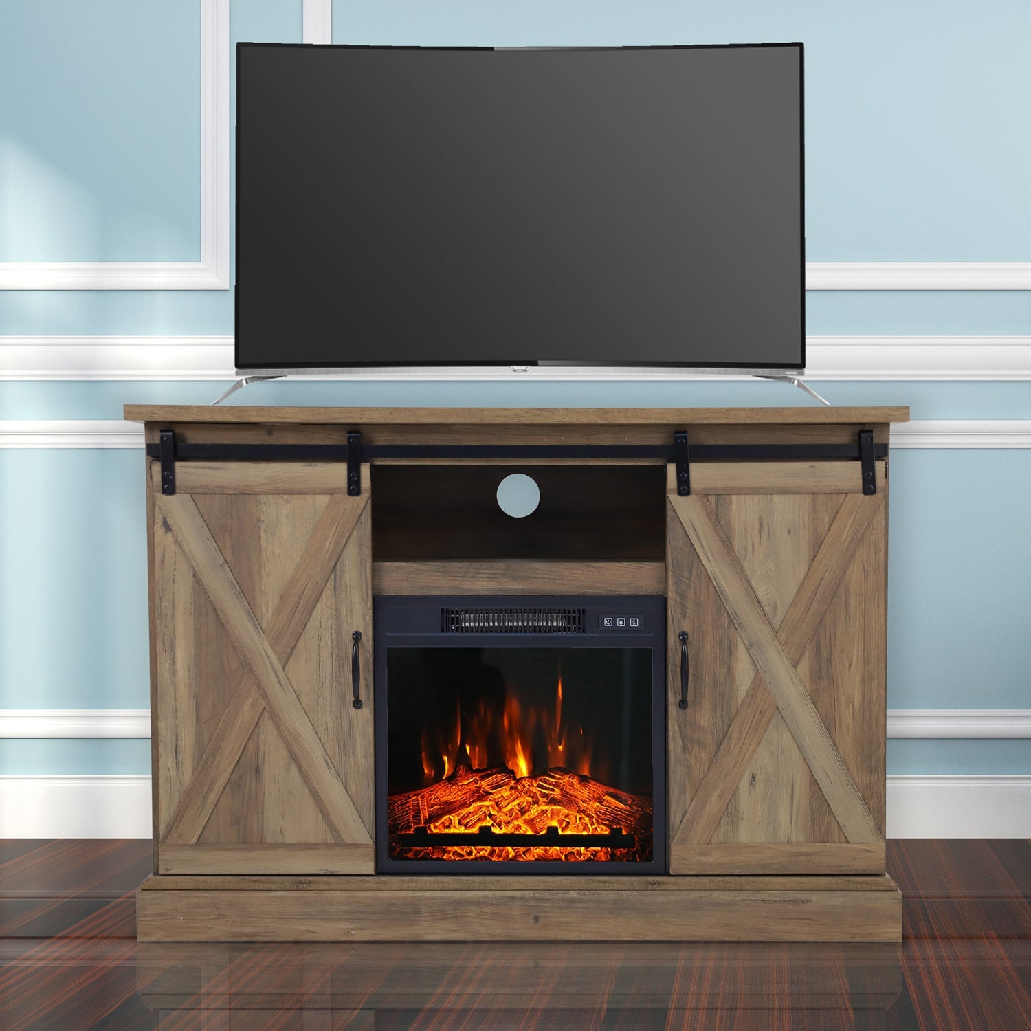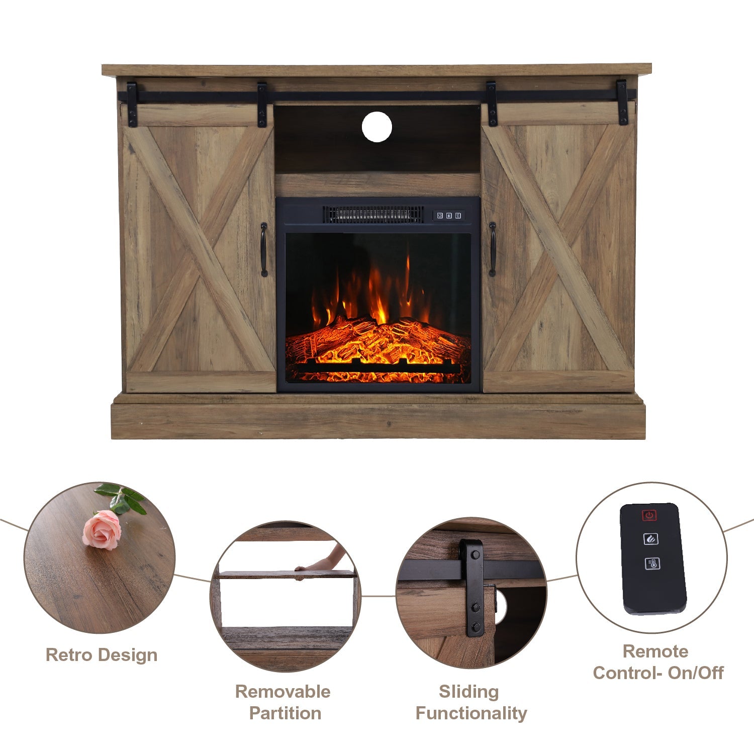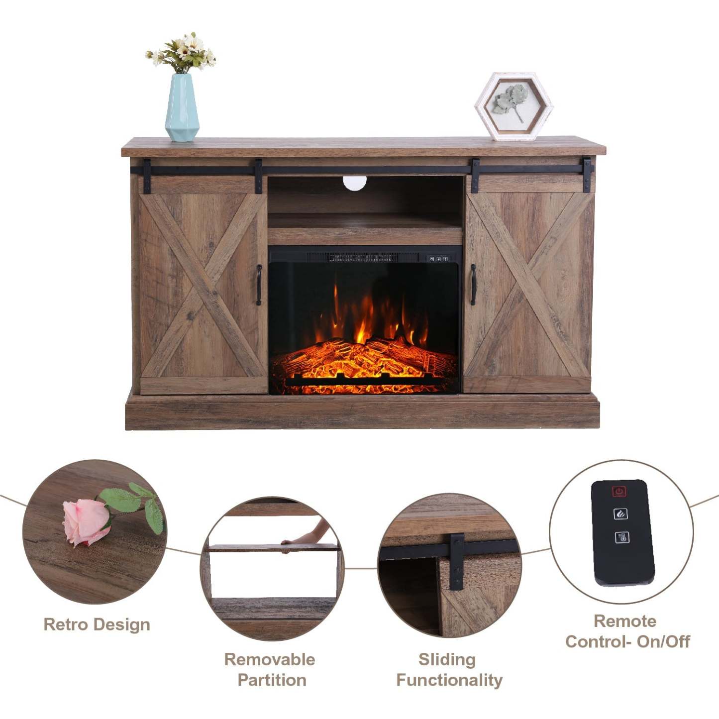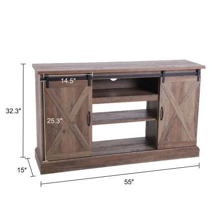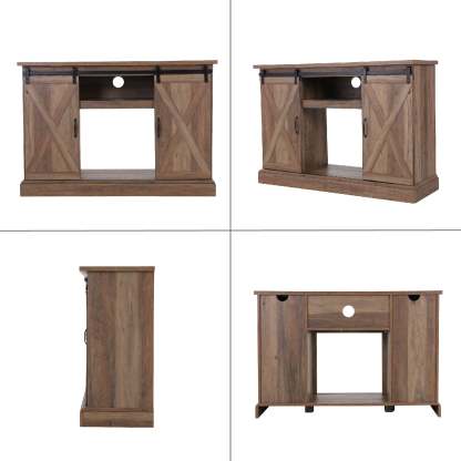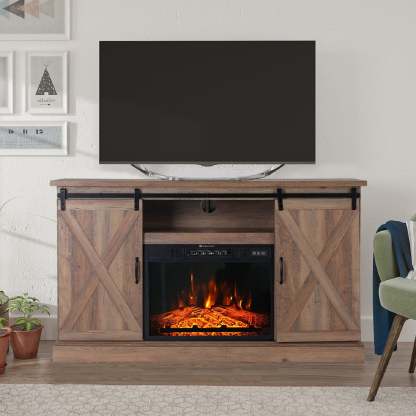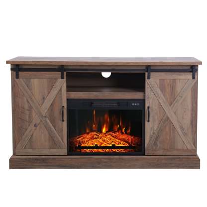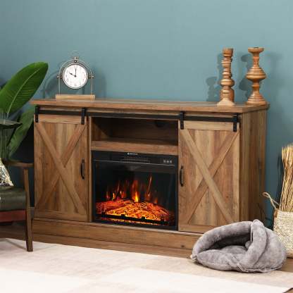 47''/55'' Fireplace TV Stand and 18''/23'' Plug-in Fireplace with Storage Shelves and Sliding Double Barn Door