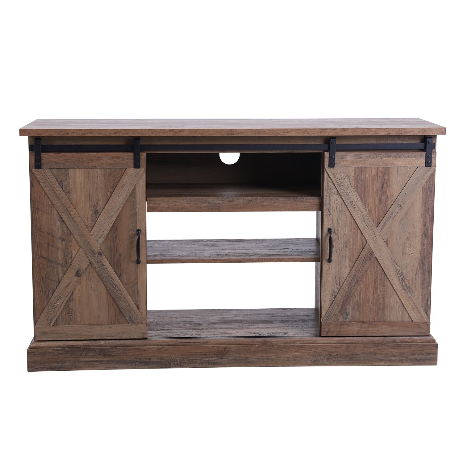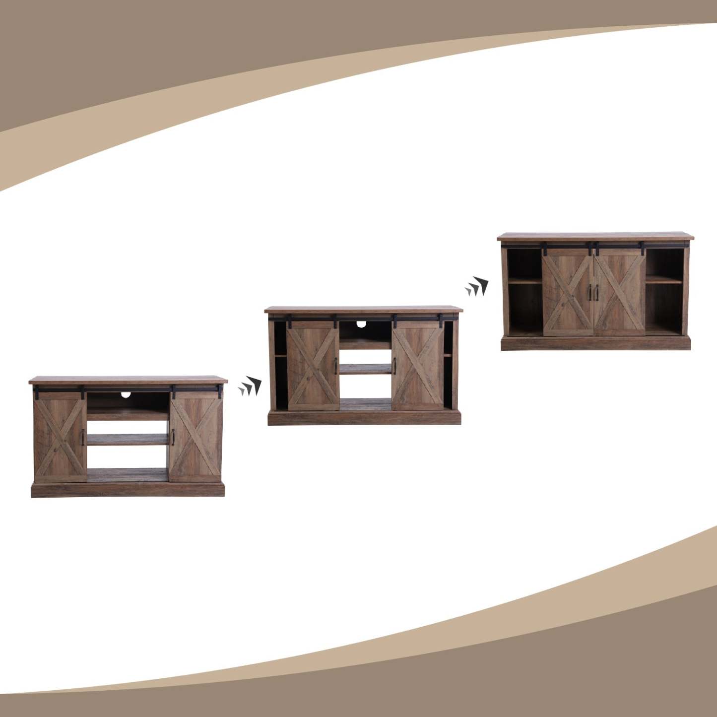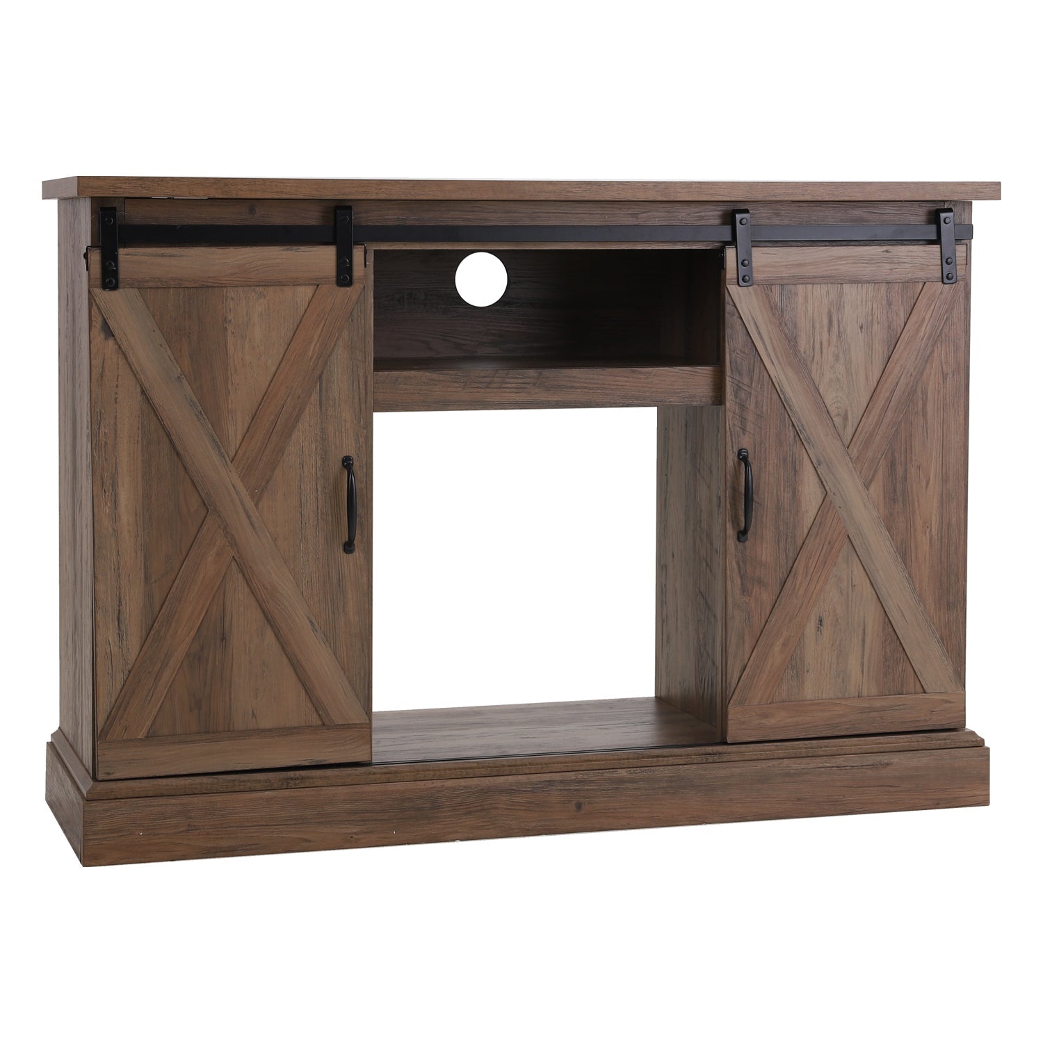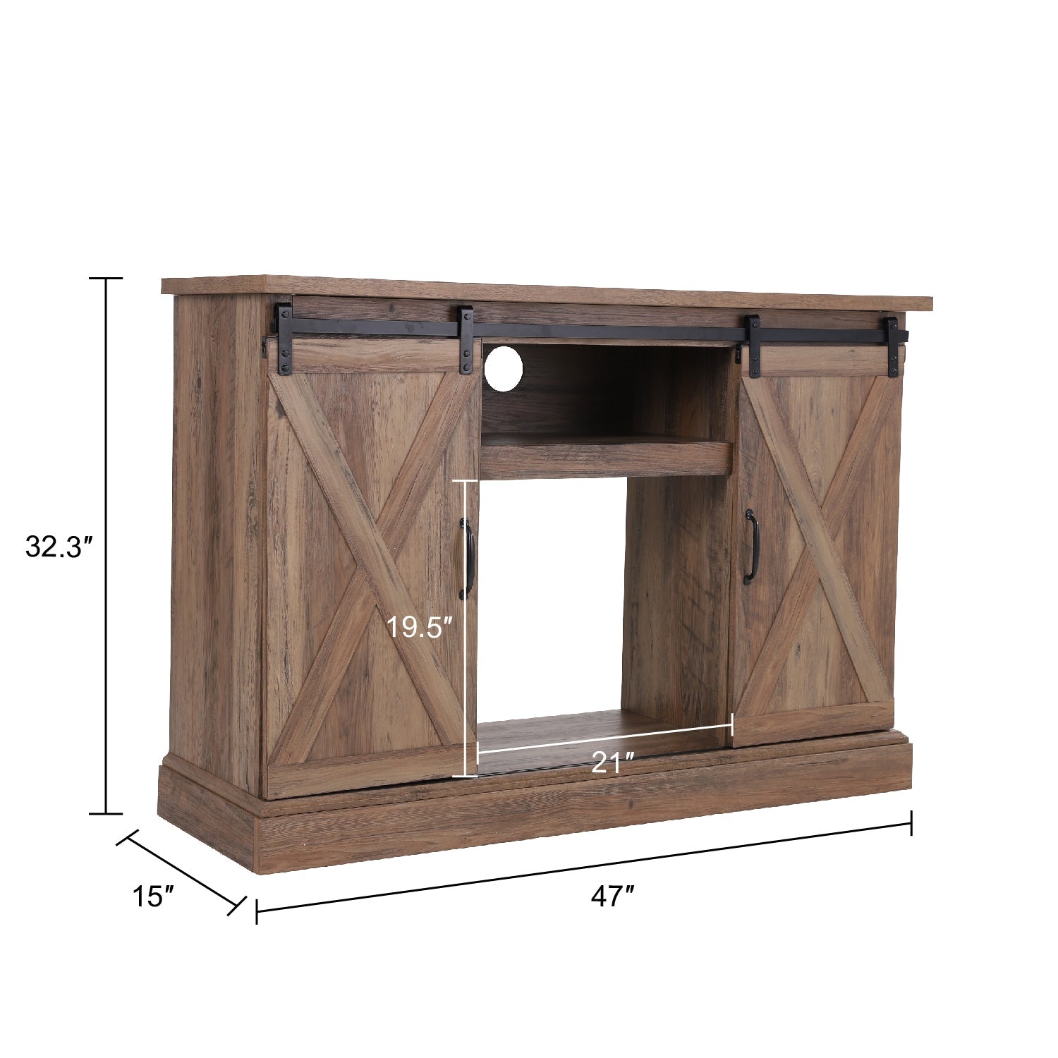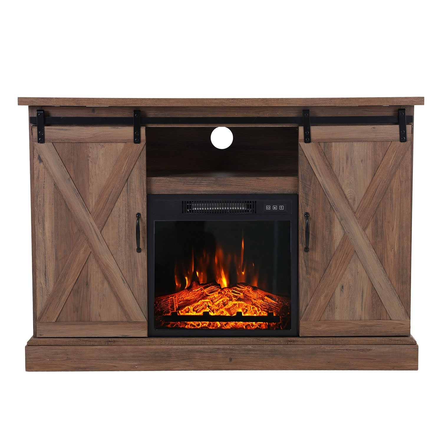 47''/55'' Fireplace TV Stand and 18''/23'' Plug-in Fireplace with Storage Shelves and Sliding Double Barn Door