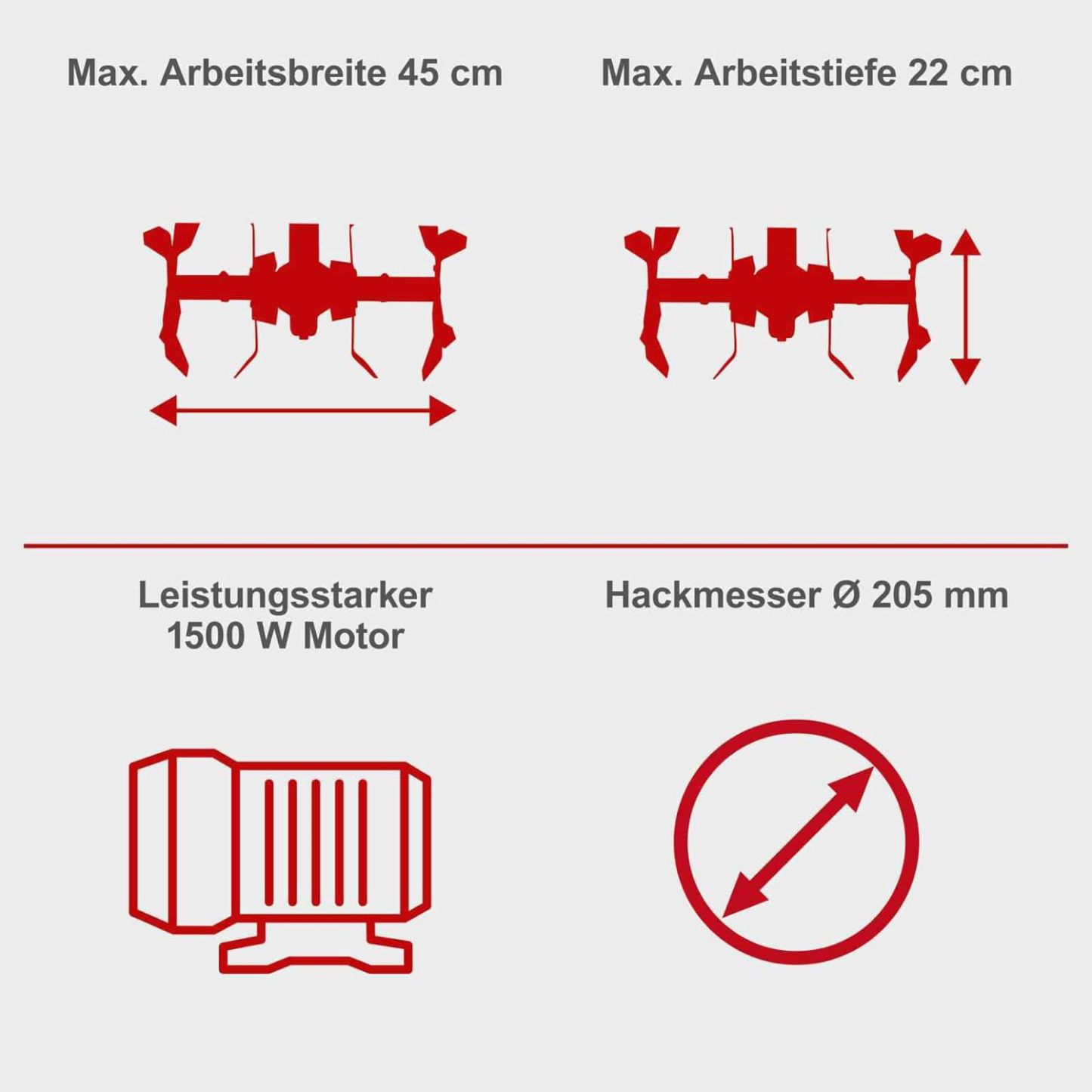 Scheppach Electric tiller MTE460 | 1500W | 450mm Width & 220mm Working Depth | Equipped with 24 Knives | Requires Low Maintenance | Folding Handlebar | Ideal for vegetable garden