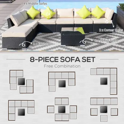 Made from durable PE rattan, fully weatherproof & UV resistant so will not fade in the sun, this Sol 72 Outdoor 7-Seater Rattan Effect Sofa Set is perfect for the garden. It offers flexibility and can easily be moved to suit any occasion.