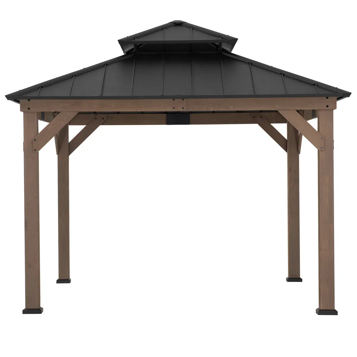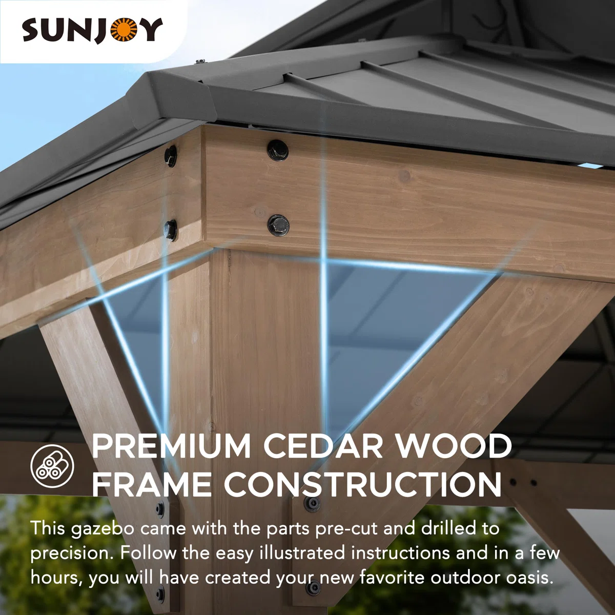 Sunjoy 11 x 11 ft. Wood Gazebo Standard Cedar Framed Gazebos with Black Double Steel Hardtop Roof for Garden, Backyard Shade