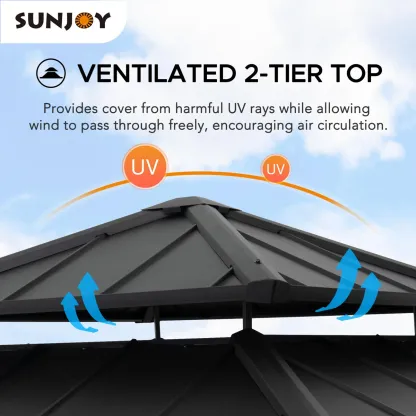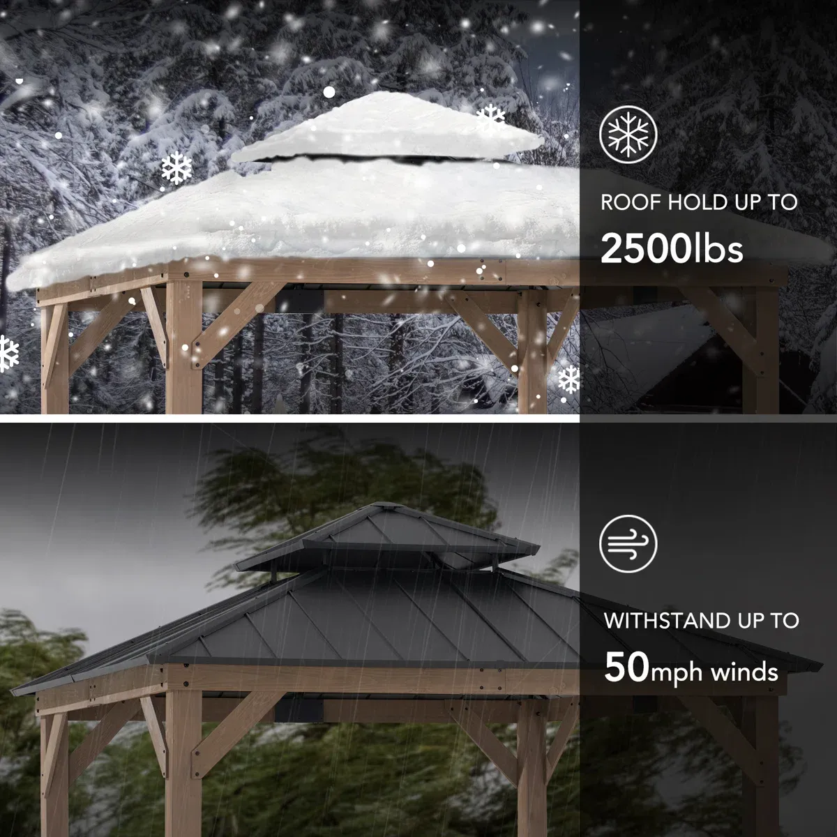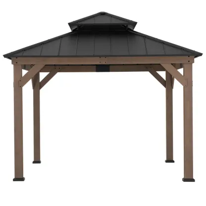 - Sturdy & Stability: This 11x11 ft. hardtop gazebo is constructed of durable brown steel 2-tier roof and premium chestnut-color cedar wood frame, which is designed to provide shade from the heat and keep the water out.