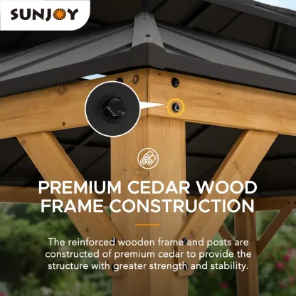 Sunjoy 12x16 ft. Wood Gazebo, Outdoor Patio Steel Hardtop Gazebo, Cedar Framed Wooden Gazebo with 2-tier Metal Roof, Suitable for Patios, Lawn and Backyard