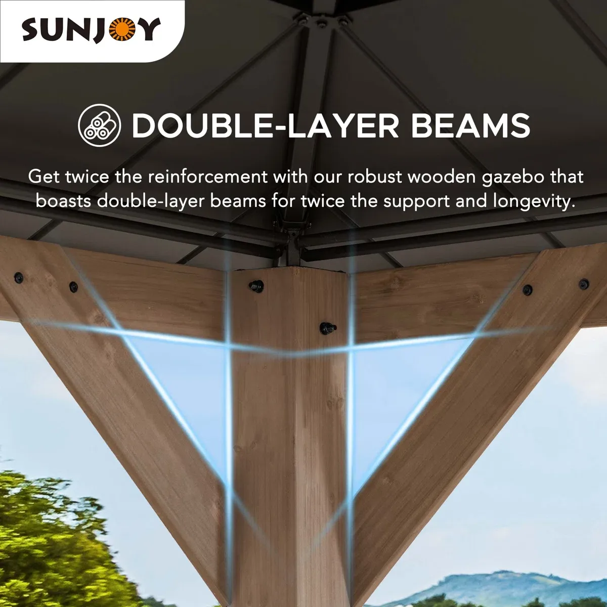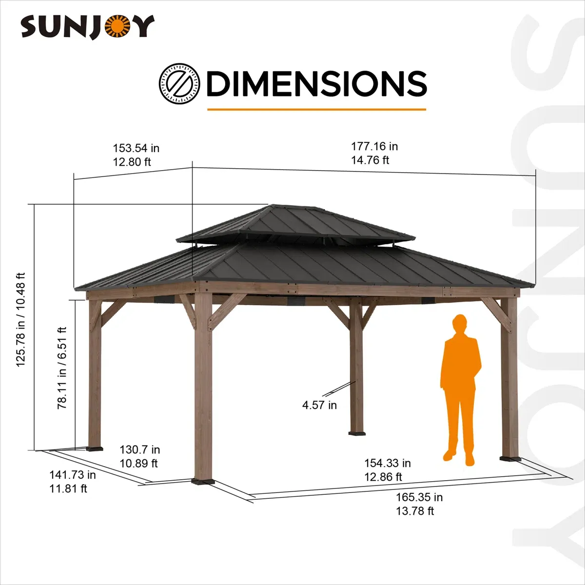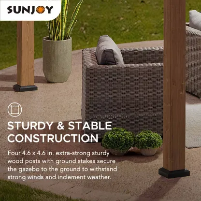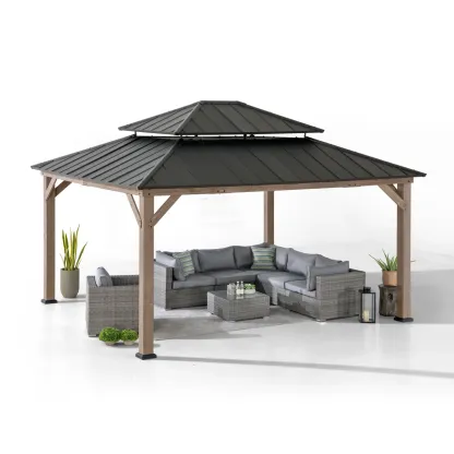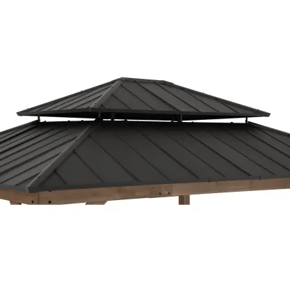 Sunjoy 13 x 15 ft. Wood Gazebo, Outdoor Patio Steel Hardtop Gazebo, Cedar Framed Wooden Gazebo with 2-Tier Metal Roof, Suitable for Patios, Lawn and Backyard
