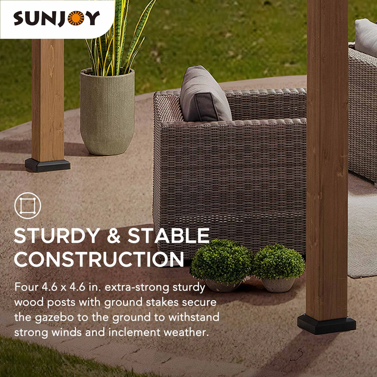 - Steel anchoring plates are included for easy securing your gazebo to resist wind
