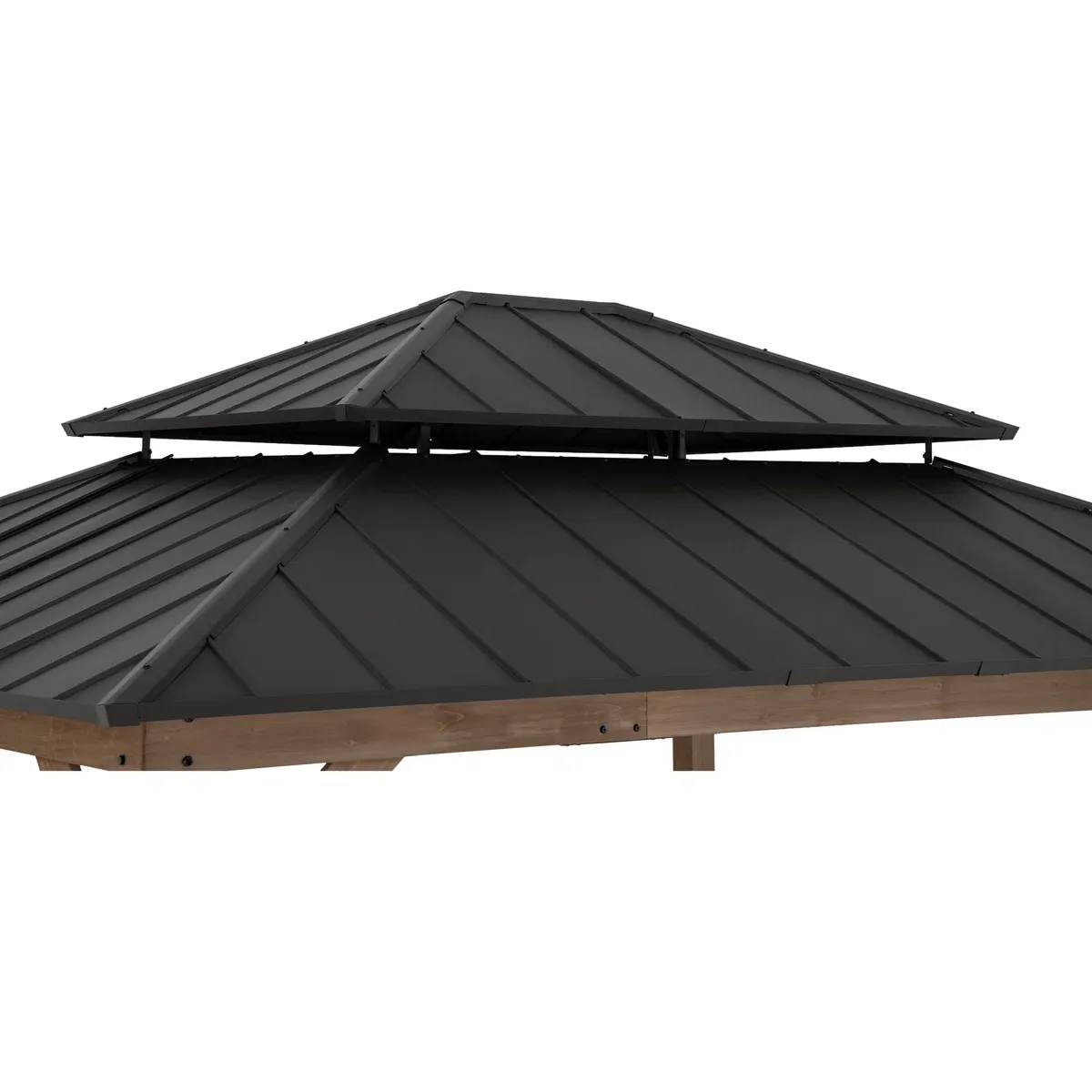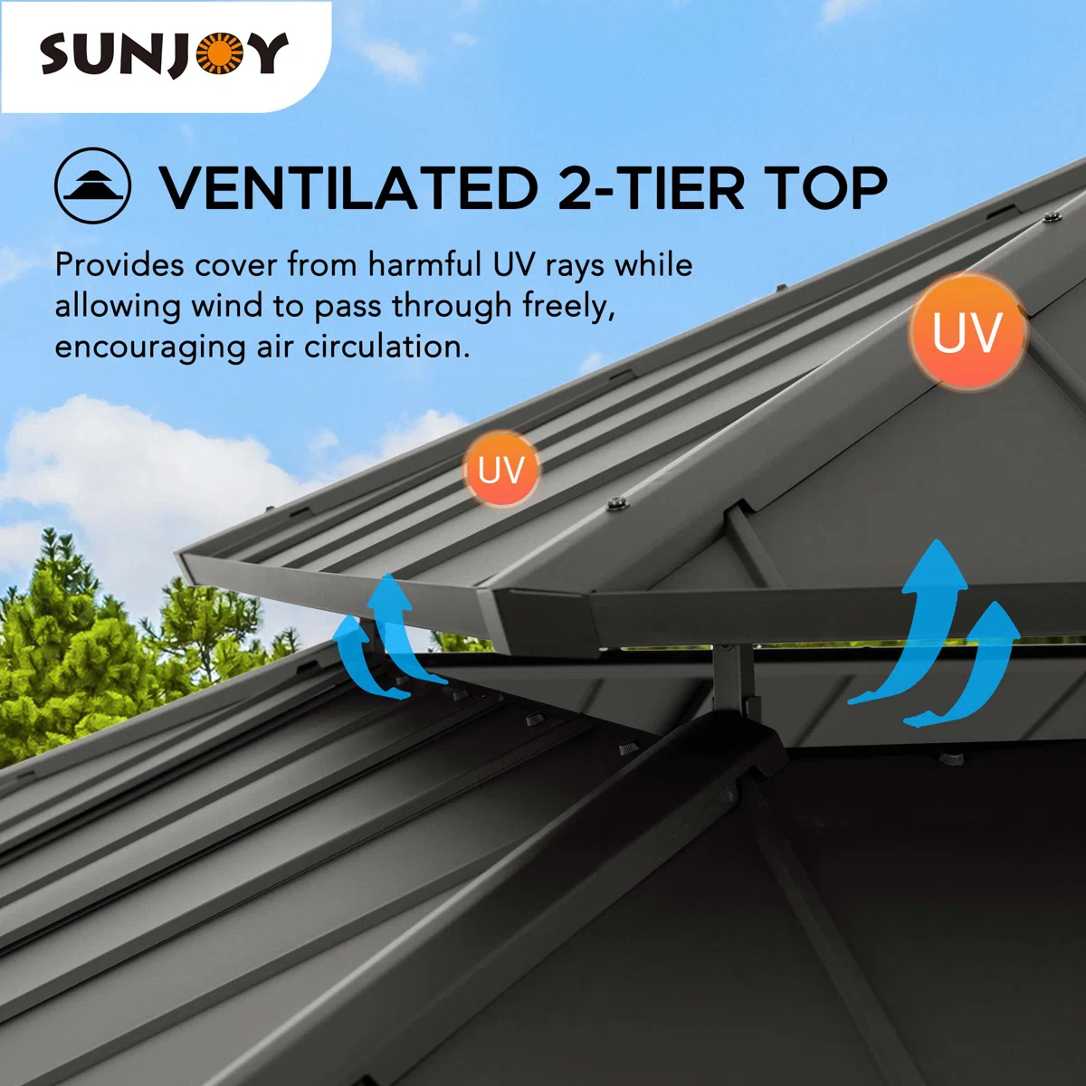 - Sturdy powder-coated steel 2-tier roof