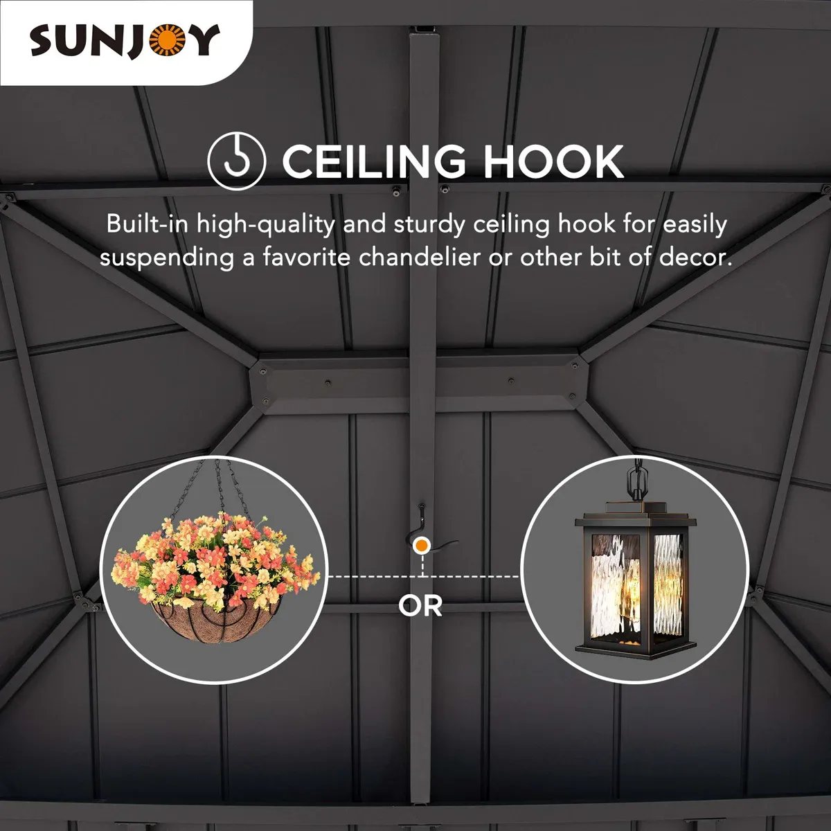 - The ceiling hook provided for suspending lighting is not included