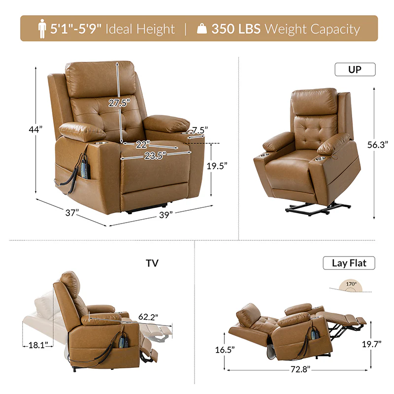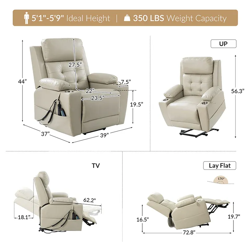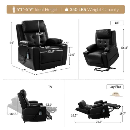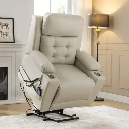 This power recliner is expertly crafted to provide unparalleled comfort and support, with the elderly in mind. Its advanced power electric lift function ensures effortless assistance when standing up. The recliner boasts a mid-century modern design with a tufted pattern and an oversized seat, offering an extra level of relaxation.