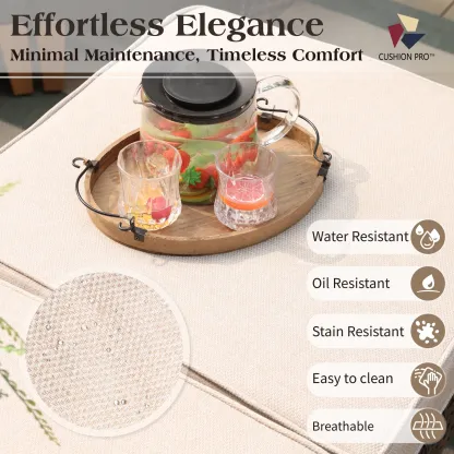 - Cushion Pro technology: Experience luxurious comfort with this cushion technology. The outdoor sectional is equipped with 10.16cm thick seat cushions that provide excellent support and retain their shape over time. These cushions are also waterproof, anti-oil and anti-stain.